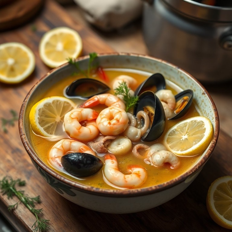 Eine leicht verdauliche Suppe, die beruhigende Aromen von Fenchel und zarten Meeresfrüchten kombiniert.