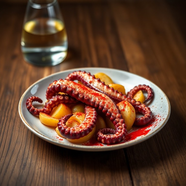 Plat traditionnel galicien revisité avec une touche de modernité, mettant en valeur le poulpe tendre et les pommes de terre fondantes. Coût matière: 6.50€ par personne.