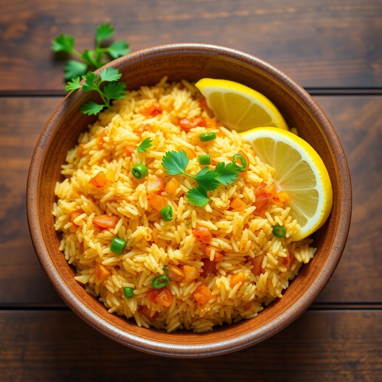 A vibrant and flavorful rice dish featuring fragrant basmati rice cooked with caramelized onions, fiery chilies, aromatic garam masala, and the pungent kick of ginger-garlic paste. Ready in under 30 minutes.