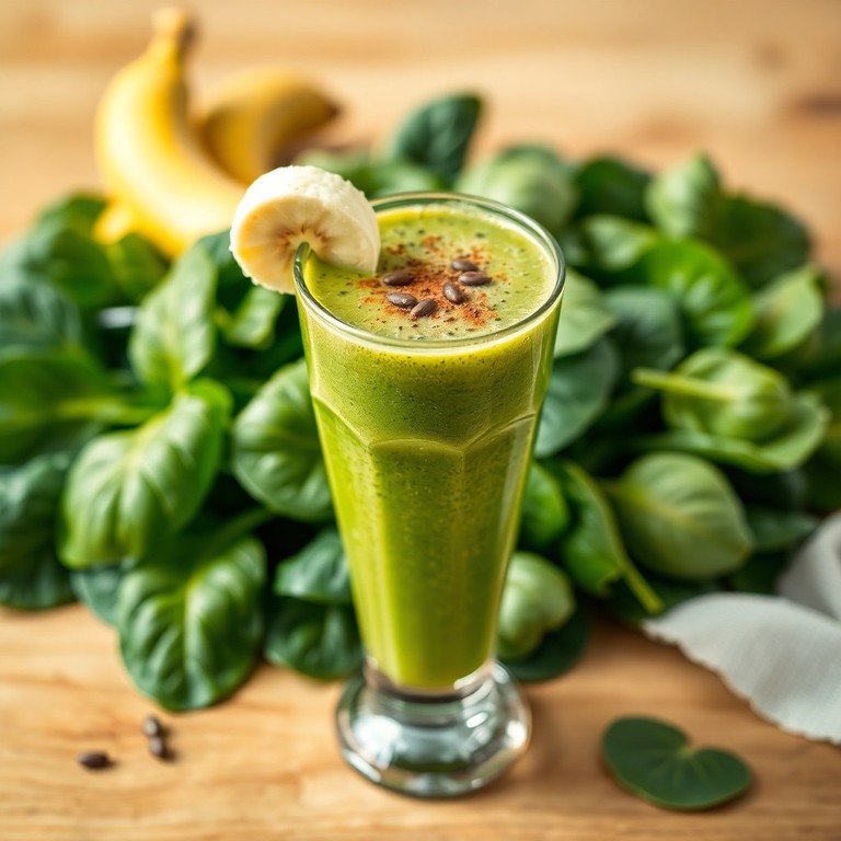 Een voedzame smoothie met banaan, spinazie, amandelmelk en een vleugje kaneel, perfect voor een energieboost.