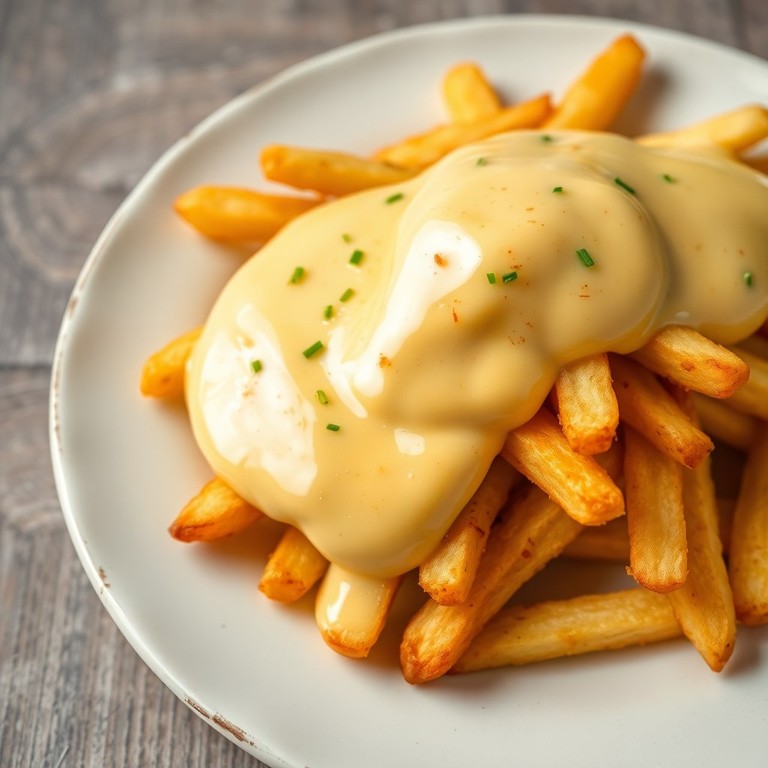 Cheddar Snow Mash is a luscious, creamy cheese sauce made from melted sharp cheddar and rich cream, enhanced with subtle spices. This smooth, savory sauce is perfect for drizzling over French fries, adding a decadent twist without using sour cream. It's easy to prepare and elevates simple fries into a gourmet snack or side dish.