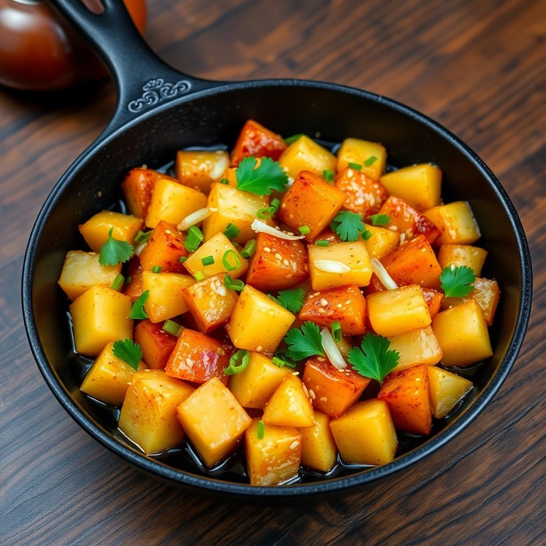 Ein aromatisches Pfannengericht mit asiatischen Gewürzen, gebratenen Kartoffeln und knackigem Chicorée – ideal für eine schnelle, würzige Mahlzeit.