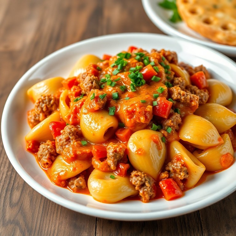 Простое и вкусное блюдо, сочетающее макароны и мясо в оригинальном соусе из кетчупа и майонеза с добавлением свежих помидоров. Быстрое в приготовлении, с ярким и насыщенным вкусом, идеально подходит для семейного обеда или ужина.