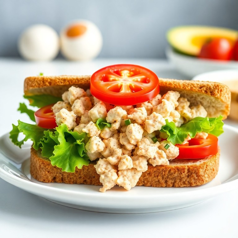 Un sándwich alto en proteínas, bajo en calorías y carbohidratos, que combina atún y huevo en pan integral tostado. Ideal para una comida saludable y rápida, con una mezcla cremosa y sabrosa que aporta energía y saciedad.