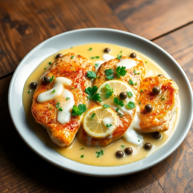 A classic Italian-inspired dish featuring tender chicken breasts in a zesty lemon and garlic sauce, finished with a buttery touch. This quick and flavorful dinner combines the brightness of lemon with the richness of sour cream and butter for a comforting yet refreshing meal.
