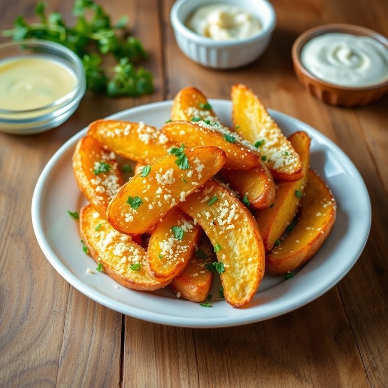 Golden, crunchy potato wedges coated with Parmesan cheese, perfect as a snack or side dish, ready in 20 minutes. These air fryer potatoes deliver a crispy exterior with a tender inside, enhanced by savory Parmesan and herbs for irresistible flavor.