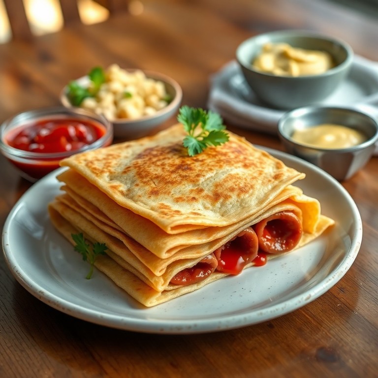 Uma panqueca salgada e prática, feita com massa de trigo leve e recheada com salsichas saborosas. Perfeita para um café da manhã reforçado ou um lanche rápido, combina a textura macia da massa com o sabor clássico da salsicha, proporcionando uma refeição simples e deliciosa.