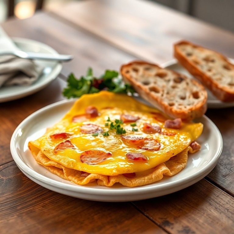 Классический французский омлет, запечённый с нежным расплавленным сыром и сочной ветчиной. Идеально подходит для сытного и вкусного завтрака, который подарит заряд энергии на весь день. Простое и изысканное блюдо, которое легко приготовить дома.