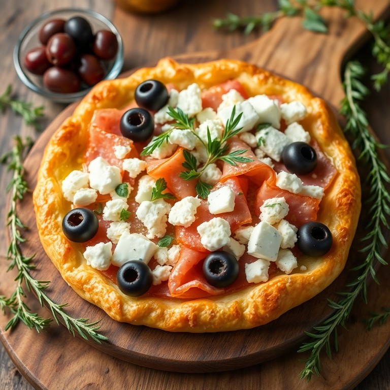 Une tarte croustillante et savoureuse, combinant la richesse de la feta, la douceur du jambon, la saveur intense des olives noires et la fraîcheur des herbes aromatiques. Parfaite pour un déjeuner ensoleillé ou un pique-nique gourmand, cette tarte apporte un équilibre harmonieux entre textures fondantes et croquantes.