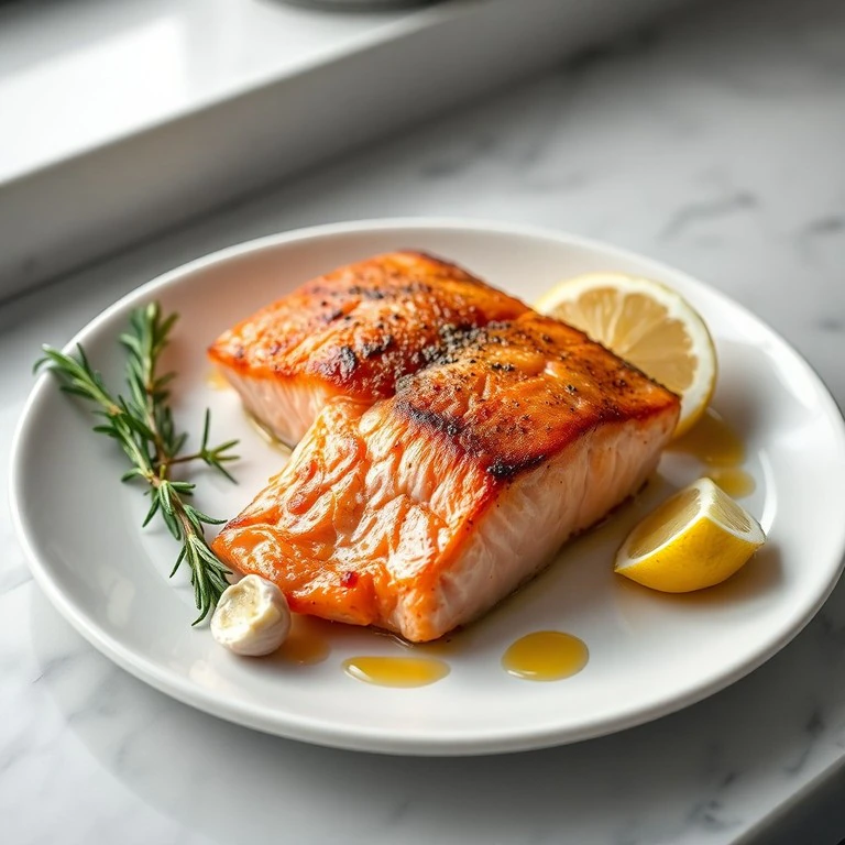 Быстрый и сочный лосось, обжаренный до золотистой корочки на сковороде, идеально подходит для здорового питания. Аромат чеснока и трав придает блюду изысканный вкус.