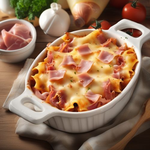 A delicious and comforting baked pasta dish with ham and cheese
