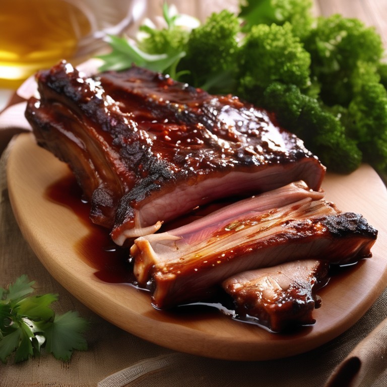 Нежные и сочные ребра, запеченные в ароматном медово-горчичном соусе. Блюдо с богатым вкусом и приятным ароматом.