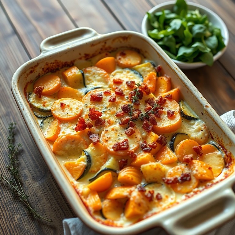 - Falukorvsgratäng med bacon och morötter