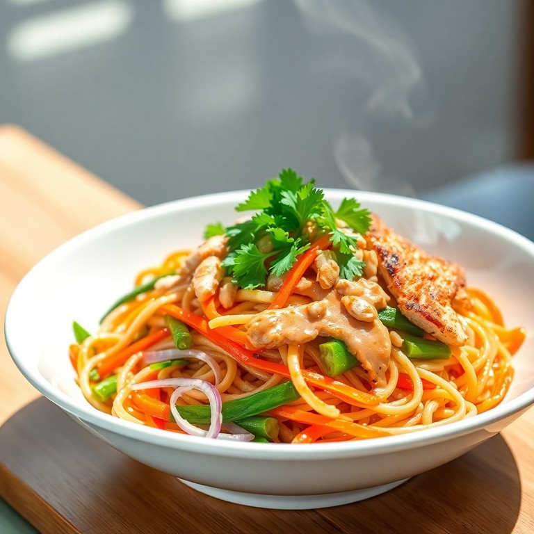 Asiatisk Kycklingnudelsallad med Jordnötssås
