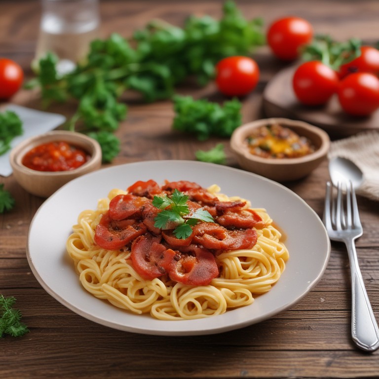 Macarrão à Carbonara Brasileira com Linguiça Calabresa e Molho de Tomate