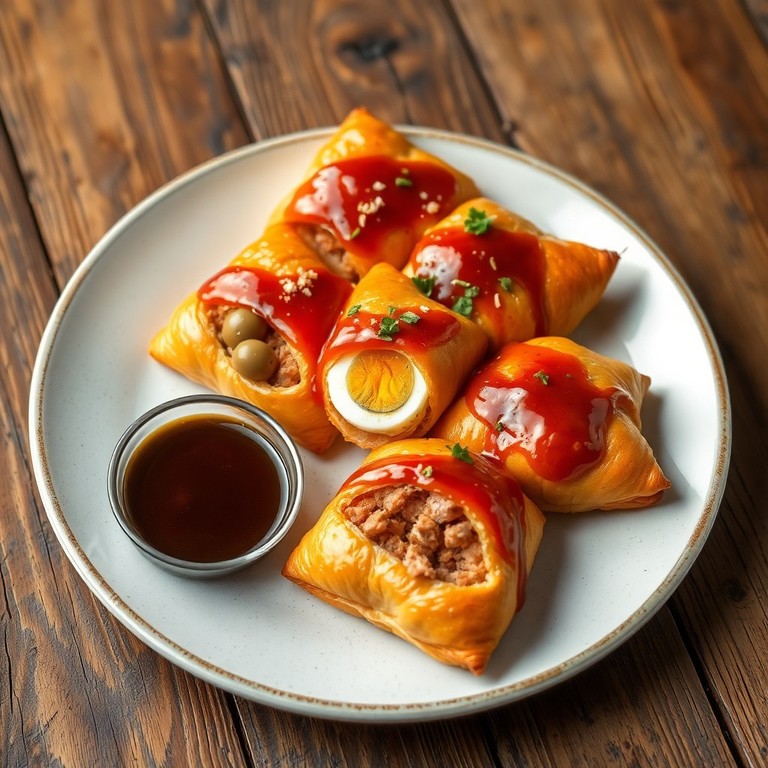 - Rollitos Crujientes de Atún Endiablado con Huevo y Glaseado Dulce