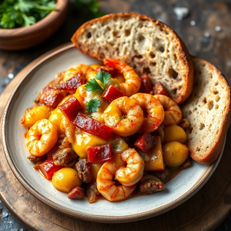 - Revuelto de Patatas y Embutidos con Gambas