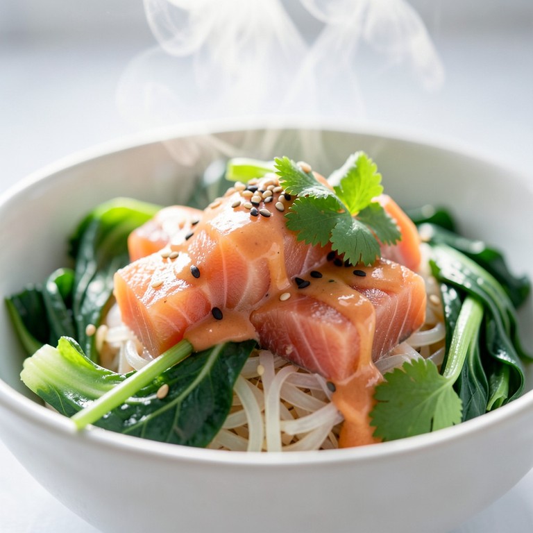 - Laxbowl med pak choi och risnudlar