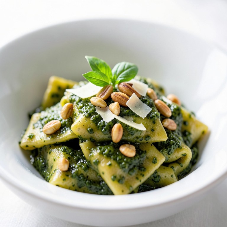 - Tortelloni med pesto och rostade pinjenötter