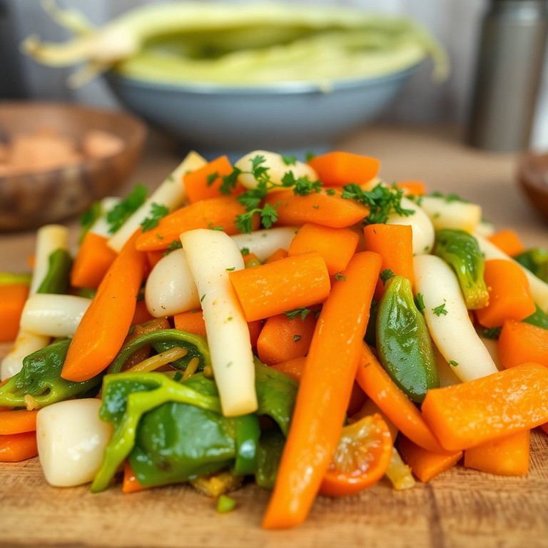Bunte Karotten-Kohlrabi-Pfanne mit frischen Kräutern