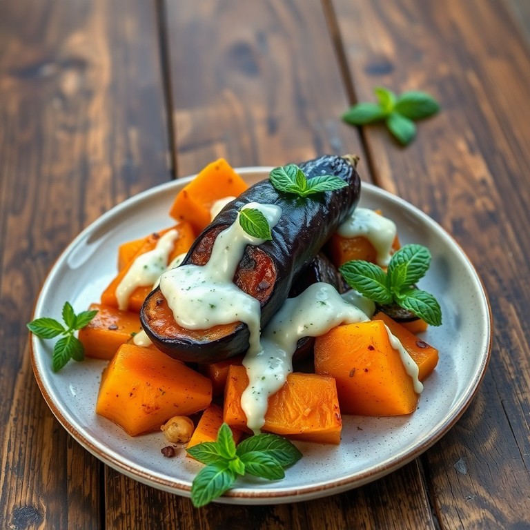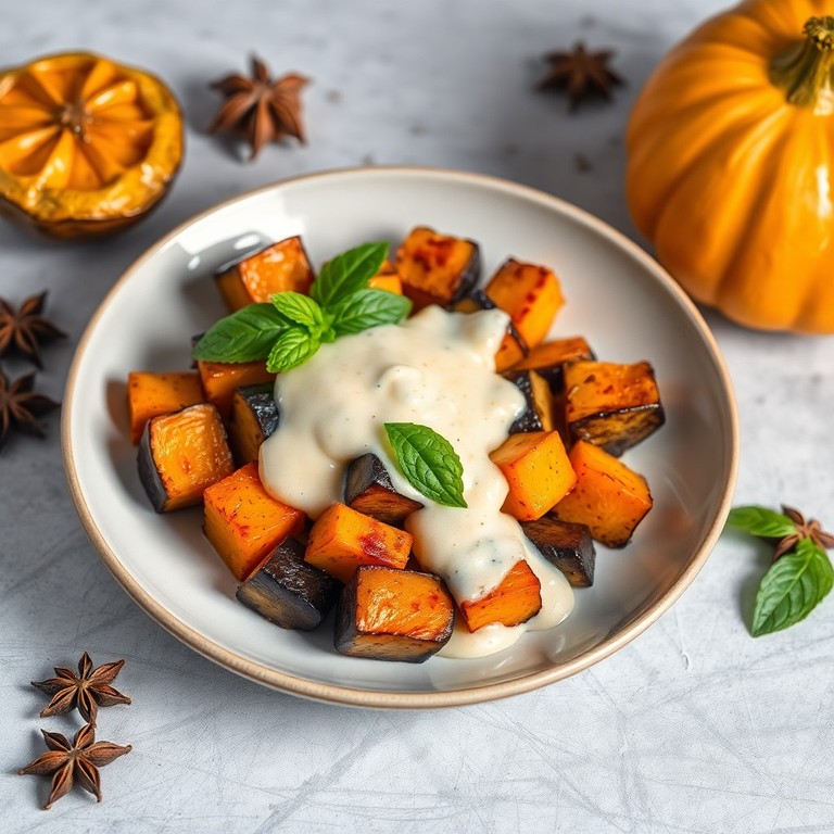 Guarnición de Calabaza y Berenjena con Crema de Anís y Hierbas Frescas