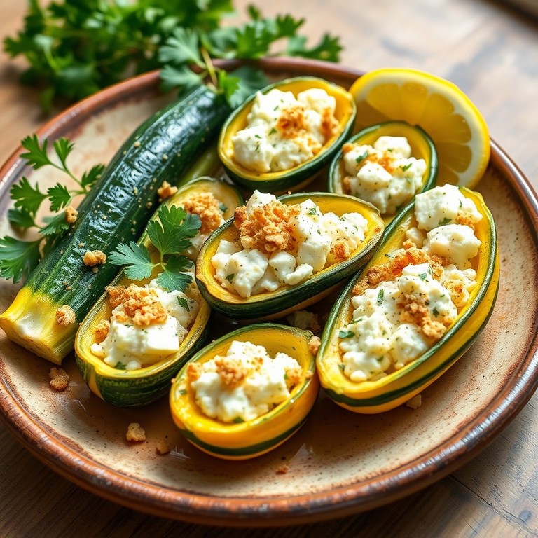 Gefüllte Zucchini-Boote mit Feta und Kräutern