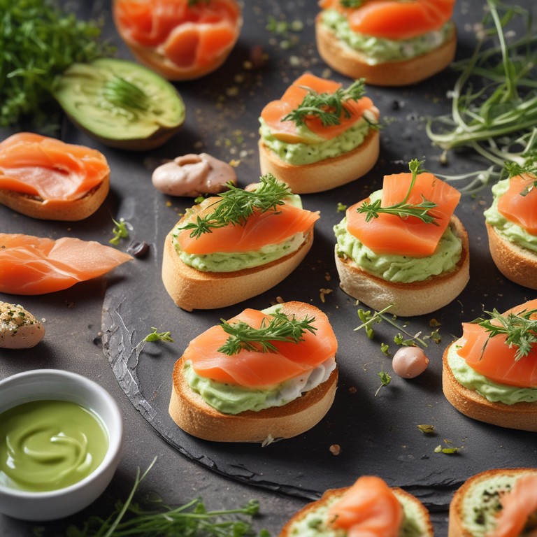 Savory Canapés with Creamy Avocado and Smoked Salmon
