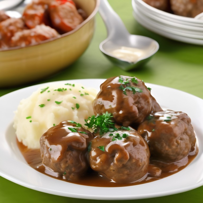 Savory Meatballs with Onion Gravy and Mashed Potatoes
