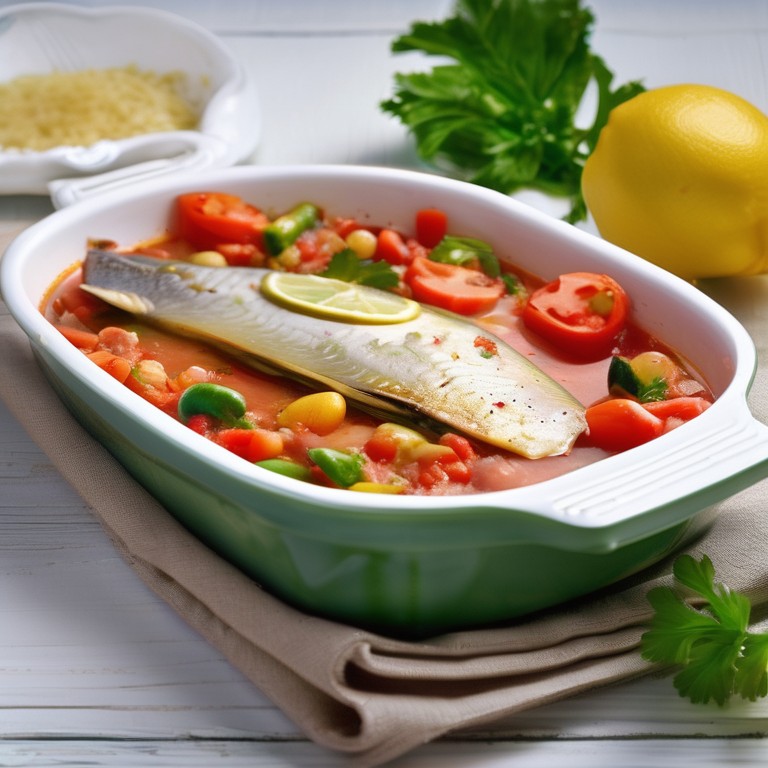 - Pescado al Horno con Salsa y Verduras