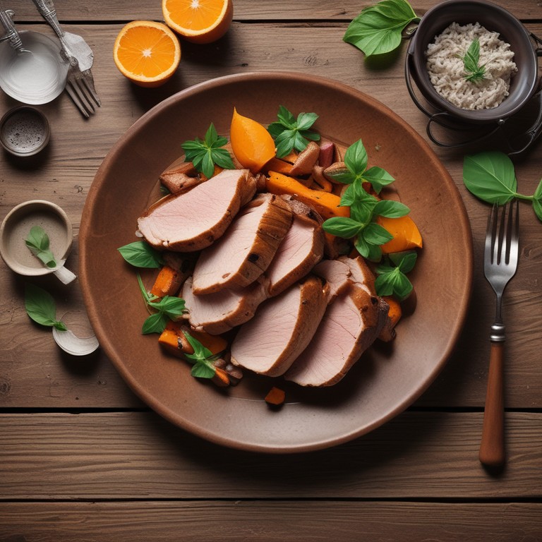 Carne Suína com Batata Doce e Laranja ao Manjericão