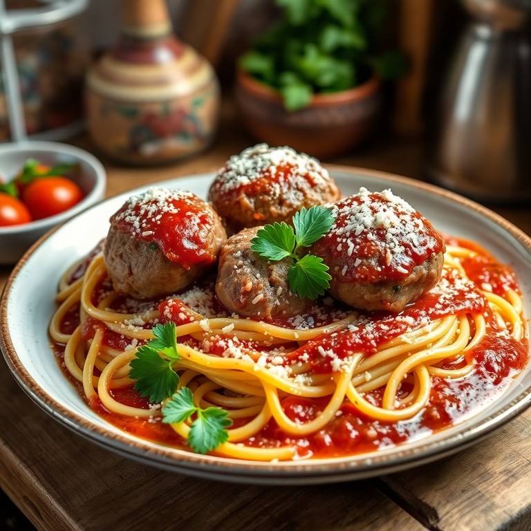 Espaguete Clássico com Polpetone Recheado ao Molho Sugo
