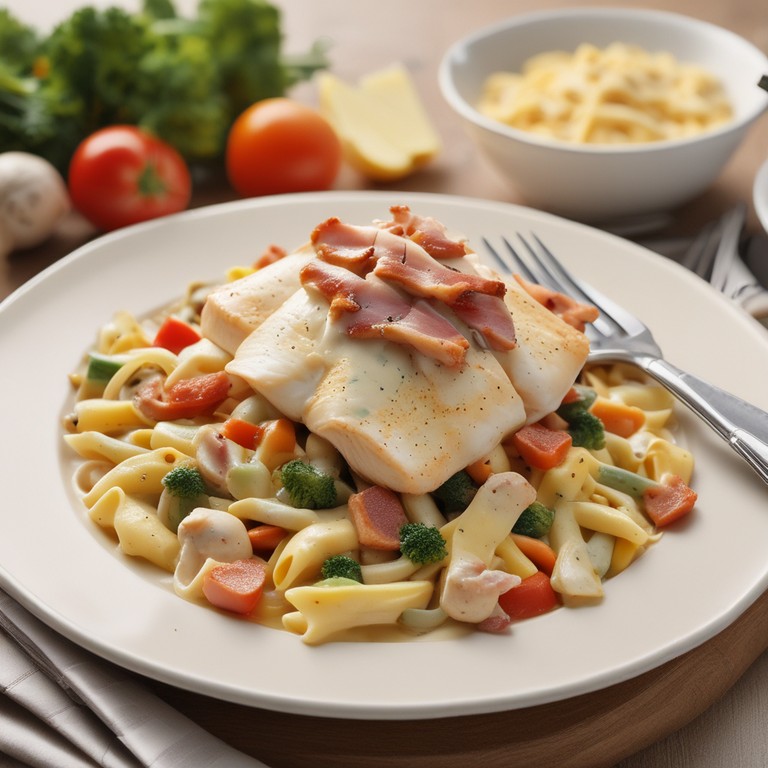 Creamy Catfish Alfredo with Mixed Vegetables and Bacon