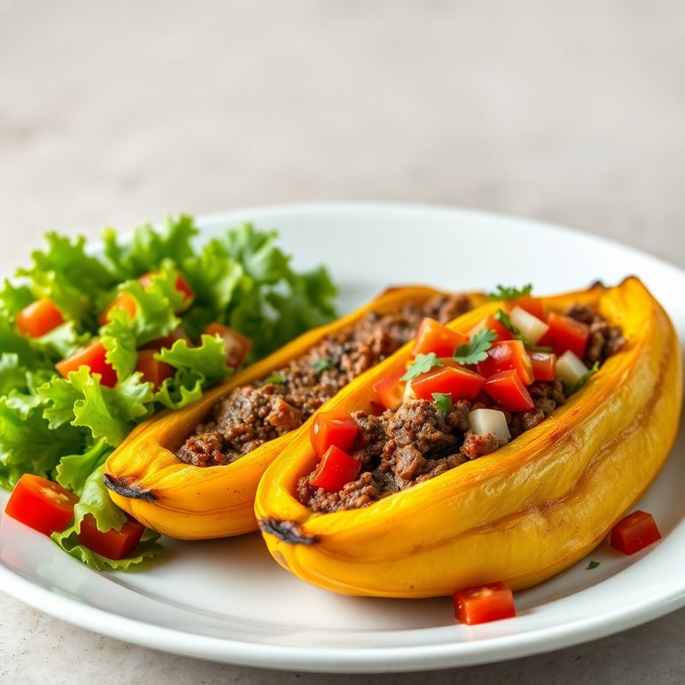 Plátanos Rellenos con Carne y Ensalada de Lechuga