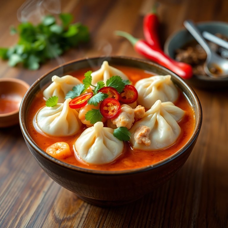 Spicy Chicken & Prawn Dumplings in Broth