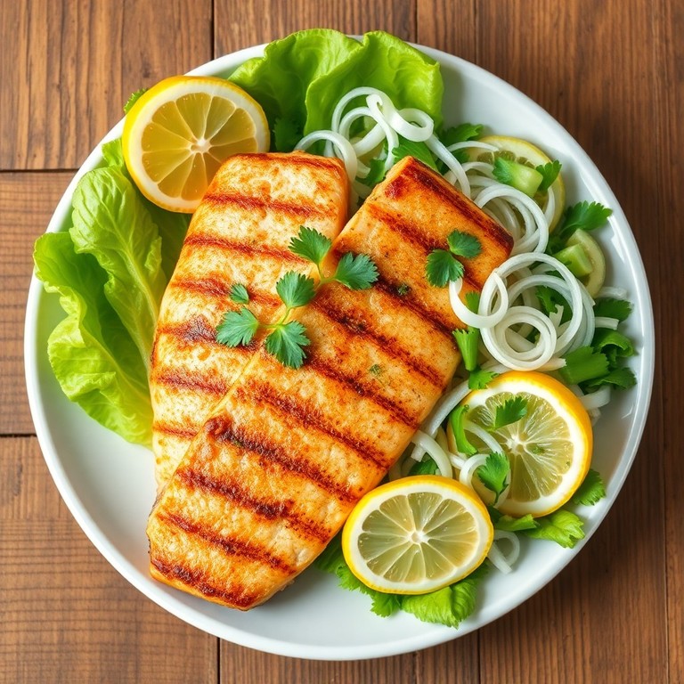 - Pescado a la plancha con ensalada fresca de lechuga y cebolla china