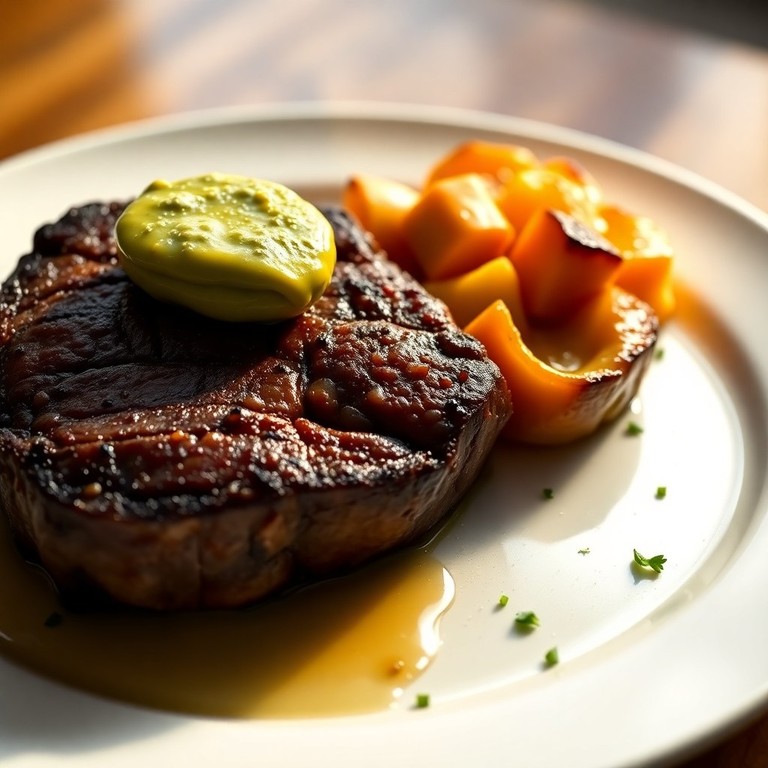- Älgryggbiffstek med Vitlökssmör och Krämig Potatis- & Sötpotatisgratäng
