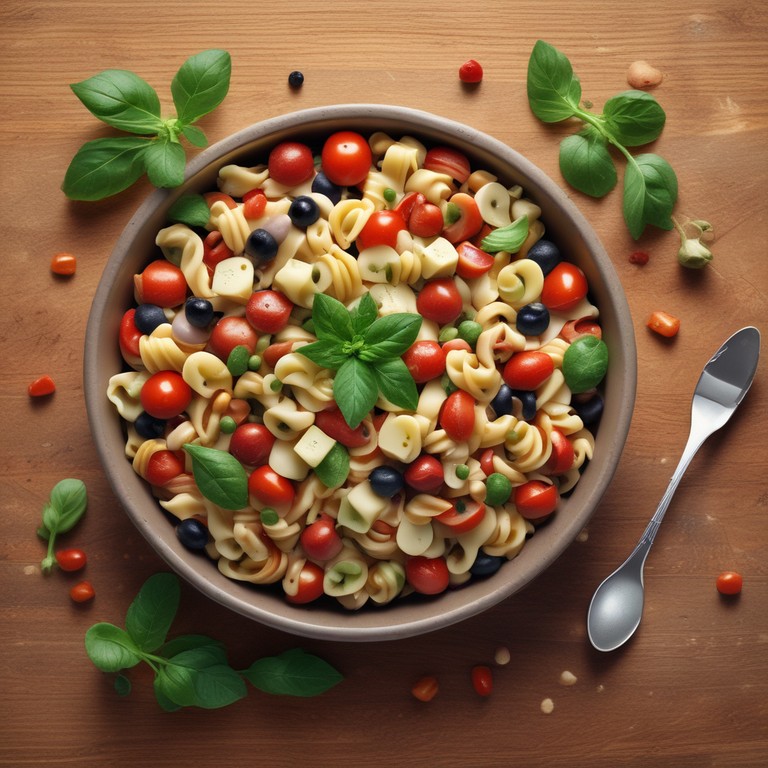 Bunter Nudelsalat mit Hülsenfrüchten und Pesto
