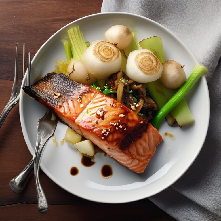 Saumon Teriyaki avec Chou-Fleur Rôti et Navets Sautés aux Poireaux