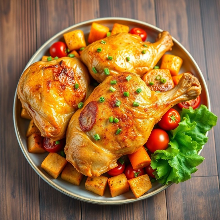 Sobrecoxas e Coxas Desossadas Assadas com Legumes ao Forno
