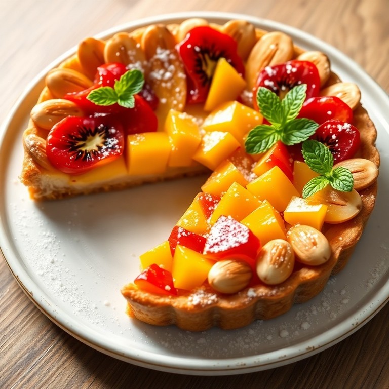 Tarte de Frutas Tropicais com Crosta de Amêndoas