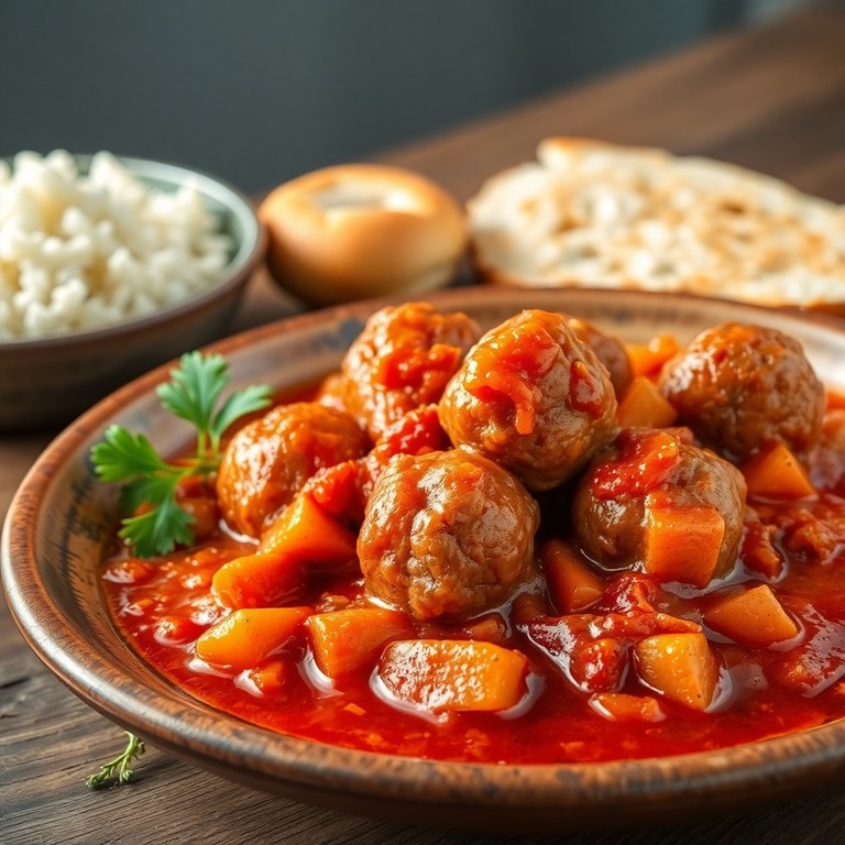 Albóndigas de carne con zanahoria y cebolla en salsa de tomate