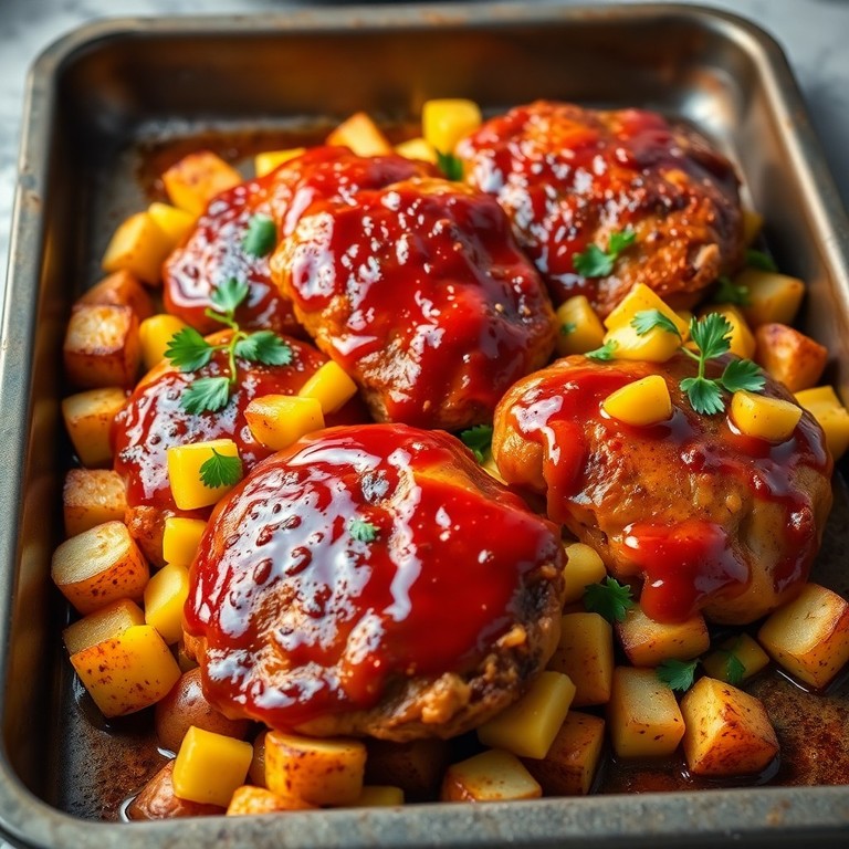 Spicy Baked Chicken Thighs with Roasted Potatoes and Corn