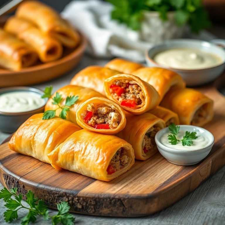 Hackfleisch-gefüllte Blätterteig-Röllchen