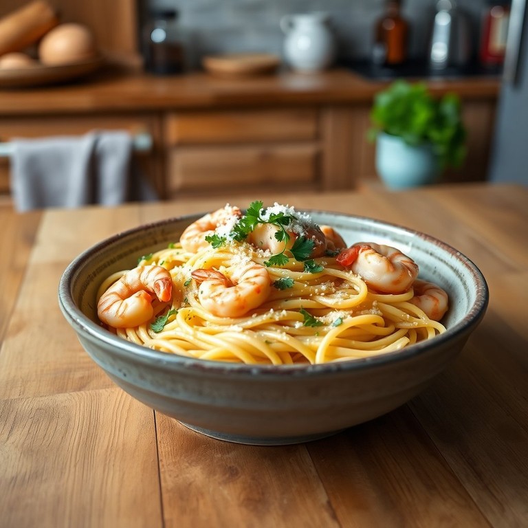 Pâtes Crémeuses aux Crevettes et Poulet Fumé