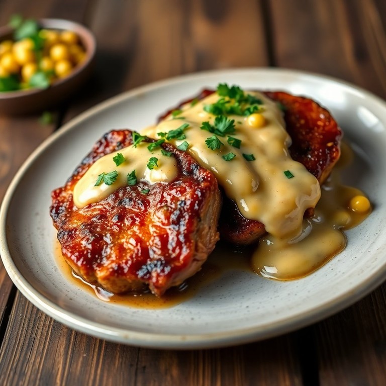 Côtelettes de Porc Caramélisées avec Crème de Maïs