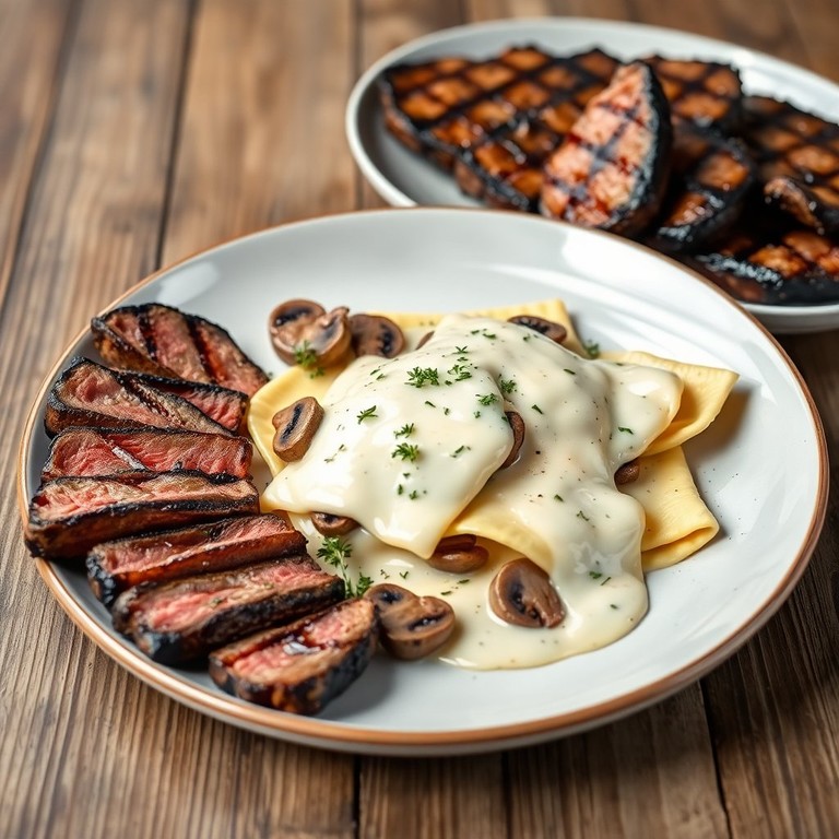 Ravioli aux Champignons et Steak Grillé