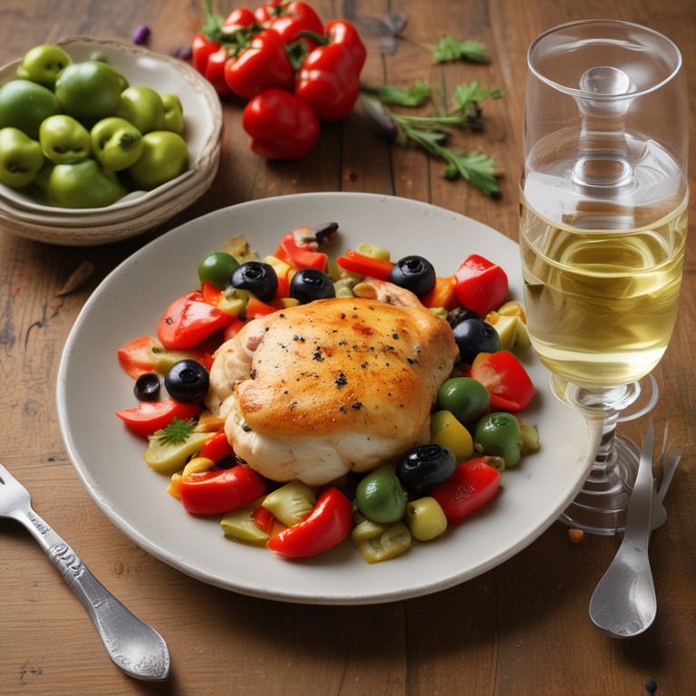 Pollo a la Portuguesa con Salsa de Pimientos y Aceitunas