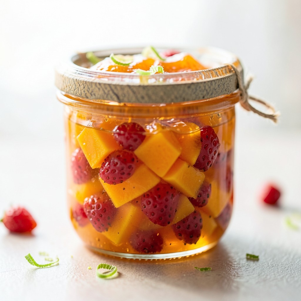 Exotisk mangosylt med lime och smultron