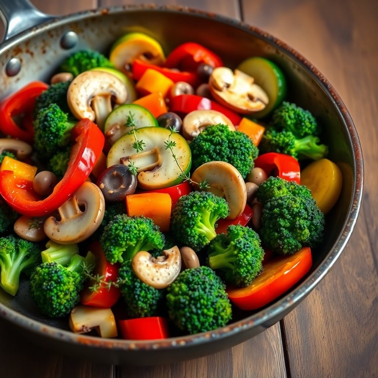 Mélange de Légumes Sautés aux Champignons et Oignons