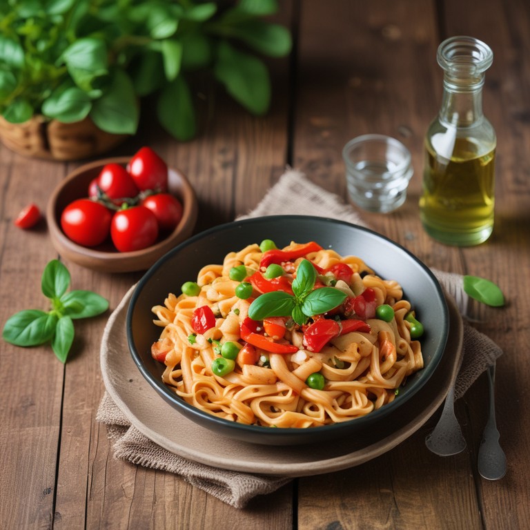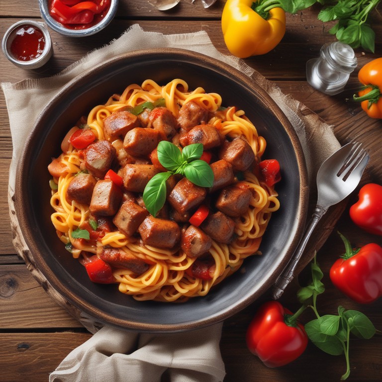 Bratwurst-Nudeln in Tomatensauce mit Paprika